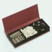 From Four Seasons, a box of scented stones & ceramic pieces by Esteban in Teck & Tonka, a "spicy, woody scent with an oriental flair nutmeg, cinnamon, cloves sandalwood, musk, Tonka bean." $35.