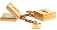 At Neiman Marcus, an Yves Saint Laurent Elle charm: "This bag accessory features an elle Yves Saint Laurent solid perfume and a fuchsia pearly lip gloss to customize a bag or a belt with absolute glamour". $56.
