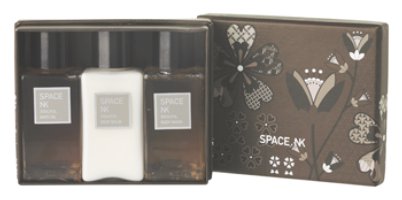 In keeping with its streamlined, user-friendly style, Space NK offers its own line of fragranced products, which are sold both as individual items and as sets. I sniffed a few scents before making my choice. Compelling, a sprightly, fruity rose, reminded me of Hermès’s Rose Ikebana, and I know that Seduction is a particular favorite of Annie over at Blogdorf Goodman, but Soulful was the blend that attracted me the most. According to the Space NK literature, this “comforting” scent was “created following a visit to the hot springs in Gora Kadan—a traditional Japanese inn around the foot hills of Mount Fuji, where enveloped in the warm spring water you can simply lie back and listen to the breeze gently rustling the leaves in the trees”.