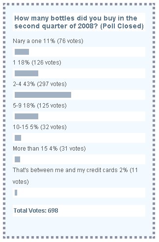 The second quarter of the year is over, so it's 'fess up time again: how many bottles did you buy in April, May and June?