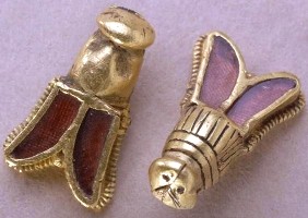 4. Bees were a symbol of Napoleon I’s reign. Bees represented immortality and resurrection, and the bee, as a symbol, linked the new, Napoleonic dynasty to the ancient Merovingian rulers of (what became) France. In 1653, golden “bees” (see image above) were found in Tournai in the tomb of Merovingian King Childeric I (many historians now believe these “bees” are, in fact, depictions of cicadas). Source: Napoleon.org