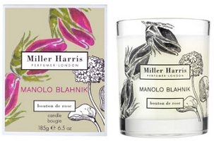 From Miller Harris, a special edition Bouton de Rose candle for the Manolo Blahnik collection at Liberty of London. £36.