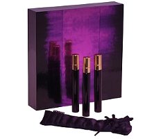From L'Artisan Parfumeur, two coffrets: Les Masculines, shown above, with 15 ml bottles of Timbuktu, Fou d'Absinthe and L'Eau de L'Artisan; or Les Best, not shown, with Mûre et Musc, Premier Figuier and La Chasse aux Papillons. $95 each.