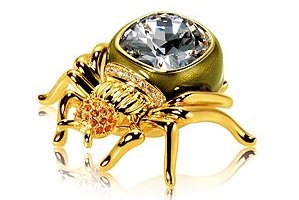 From Estee Lauder, Pleasures perfume in the Pleasures Spider Compact: "Limited edition, crystal-encrusted collectible opens to reveal the fragrance Pleasures in a long-lasting solid perfume. Sleek and sophisticated with polished golden highlights and tiny glittering facets. It comes tucked inside a velvety pouch and beautiful gift box." $250 at Saks Fifth Avenue.