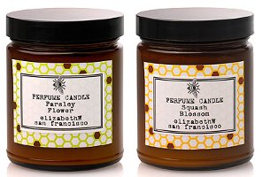 From ElizabethW, scented candles in Parsley Flower and Squash Blossom (there's another, not shown, in Tomato Leaf). $25 for 9 oz.