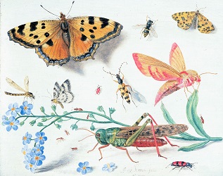 Note: top image by Jan van Kessel via Wikimedia Commons; Ten-Lined June Beetle image by Celeste Ramsay via flickr, some rights reserved; other images of Dragonfly, cricket and Cicada via Wikimedia Commons.