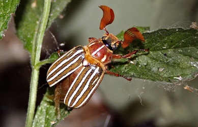 BTW, the priest at my church said that June bugs are minions of the devil, and he should know. . . I think what we call June bugs here are not the same critter as what you call June bugs, though. Our June bugs are bumbling brown things that fly right at you and get in your hair. Not the pretty striped buggies your post showed.