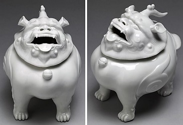 Japanese incense blends changed over time, from complex mixes of ingredients formed into a variety of shapes to "purer" enjoyment of prized, rare, exorbitantly priced wood chips. Raw materials used for incense included shells, figwort, clove, benzoin, cinnamon, star anise, machilus (a member of the laurel family). The royalty of incense ingredients (enjoyed singly, too) were sandalwood and varieties of Aquilaria (known by a variety of names and quality grades: aloeswood, agarwood, kyara, oud). Whenever I'm in a museum with Asian collections, I always search out incense storage boxes...and burners; some of my favorites show dragons and lions, mouths agape, nostrils flared, so smoke will seep from between their lips and out their noses. Dramatic, yes, but because of their diminutive size, charming and endearing, too.