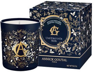 Annick Goutal's holiday candle gets a new name and spiffy new packaging for 2017: Une Foret d'Or ("Une Foret d'Or, the addictive Noel candle is wrapped in a midnight blue glass, lushly covered with white and gold leaves. This concentrate of orange peel, Brazilian mandarin and Siberian pine evokes the subtle flicker of a winter night under the snow and the stars. An enchanted forest where dreams come true.") $90 for the 300g candle, or for a 3-candle coffret with 70g each of Foret d'Or, Eau d'Hadrien and Amber, at Saks.