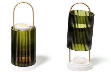 From Cire Trudon, the Promeneuse Candle and Scented Wax Set ("La Promeneuse is a decorative object designed to diffuse the Cire Trudon fragrances. After placing a cameo in the ceramic dish, light a night-light beneath it. The heated cameo will melt and spread its fragrance rapidly into the air. La Promeneuse allows to easily change fragrances. 4 scented cameos (Abd El Kader, Ernesto, Odalisque et Solis Rex) and 4 night lights are included in La Promeneuse.") $275 at Cire Trudon.
