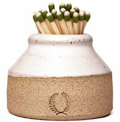 From Farmhouse Pottery, a Milk Bottle Match Striker to hold the matches next to your favorite scented candles. "This handmade Milk Bottle Match Striker doesn’t just sit pretty on a table. Store matches and light them all in one spot by striking them directly on Farmhouse Pottery’s special stoneware." $38 at Huckberry.