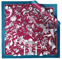 From Guerlain, a 90 cm square silk scarf 'evoking the legendary love story that inspired Jacques Guerlain' to create Shalimar. €330 at Guerlain in France.