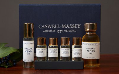 From Caswell Massey, the Steps in the Forest Essential Oils kit: "...a green, grounded set that showcases woodsy, grass, and citrus essential oils. Provides everything you need to blend your own unique blend of pure essential oils at home. Includes instructions to create a fragrance, body or beard oil preparation. [...] When we opened our doors nearly three centuries ago, we offered the same pure, fine essential oils to our customers that we used in our own perfumes and remedies. We continue that tradition, partnering with Essential Oils expert Michelle K. Gagnon to create exquisite sets of fragrant therapeutic essential oils from the finest sources around the globe." Includes 30 ml Argan Oil, 10 ml Jojoba, and 5 ml each vetiver, cedar, bergamot and frankincense (all organic). $62.