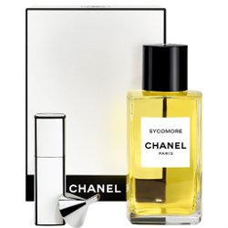 From Chanel, the Sycomore coffret, with a 400 ml vat of fragrance, plus funnel and a refillable purse spray. $590.