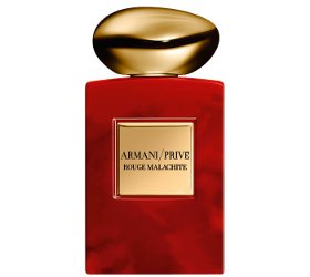 From Giorgio Armani, Rouge Malachite in the L'Or de Russie edition: "A luxurious holiday tribute to Armani/Privé’s newest icon: Rouge Malachite, featuring a gold cap, plate and sleeve." $310 for 100 ml at Giorgio Armani.