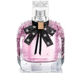 From Yves Saint Laurent, Mon Paris in the Sparkling Star Edition: "Dare to dress like a shining star with YSL. Discover the iconic Mon Paris Eau de Parfum, now turned into the Sparkling Star Limited Collector's Edition. While the iconic formula of red berries, white flowers and white remains the same, the stars and Swarovski crystals that dress the bottle bring a more rock and couture attitude to the bottle. A new collector to highlight the edgy style of Yves Saint Laurent." $165 for 90 ml at Bloomingdales.