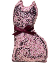 A lemming for Almost-Caturday: Paine's balsam-filled calico cat. "Use as an accent pillow, car freshener, or keep the contents of drawer fresh. This attractive and well made accent pillow is stuffed with fragrant ground balsam fir from Maine. It's a heavy little pillow with a delightful forest smell will last for many, many years. Proudly made by the Paine Products and Incense Company in Auburn, Maine. Family owned Paine has been crafting fine balsam fir pillows and incense products since 1931." Available in pink, purple or cream, $16 at Paine.