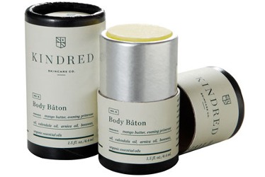 Tempting! Kindred Skincare Co's Body Baton: "An on-the-go, quick-absorbing, rich moisturizer designed for the back of your hands, lips, elbows, knees or anywhere you need, to provide and prevent hydration loss. The compact unobtrusive design and unique push up style makes it mess free and travel friendly for your pocket, purse, bag, luggage, desk or bedside table." Shown in Tangerine & Clove, also available in Woods or Lavender. $38 for 44 ml at Neiman Marcus.
