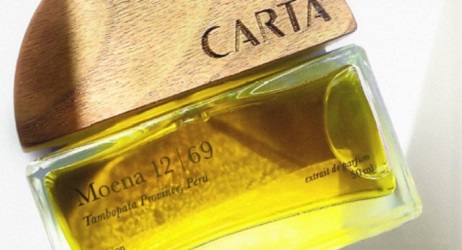 San Francisco-based Carta just released its first perfume, Moena 12|693; as stated above, the composition is centered around Moena (Endlicheria metallica) essential oil from Peru; the oil is obtained from bark, leaves, branches and flowers and does not result in the death of the trees, thus the sustainable nature of this rosewood-aroma substitute.