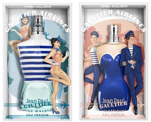 From Jean Paul Gaultier, the "Gaultier Airlines" editions of Le Mâle (75 ml) and Classique (50 ml), both in Eau Fraîche and available in travel retail.