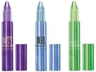 Mugler's new perfume pencils, in Alien ("Introducing the Alien perfuming pen, a new perfuming gesture. Like a touch up, fun yet sensual, the perfuming pen will allow you to always have your favourite fragrance with you."), Angel and Aura. The Daily Mail description: "A chunky crayon with a gel-like texture that you draw onto the wrists and neck to apply the fragrance." £26 each at The Perfume Shop.
