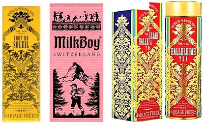In cool weather I drink tea quite often, and usually it's a gourmand tea (sorry, Robin Here at NST and all tea purists and connoisseurs!) Two of my favorite black-tea blends are from Mariage Frères: Hallelujah (citrus, fruits and vanilla) and Coup de Soleil (wild strawberry and caramel). Each blend is delicious and makes an aromatic pot of tea. The flavors are so rich and the tea fumes so sweet, no sugar is necessary.