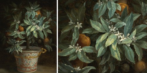 Note: top image is L'Oranger by Jean-Baptiste Oudry, 1740 [with cropped detail at right] via Wikimedia Commons.