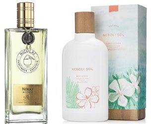 Parfums de Nicolaï Néroli Intense is available in 30 ($62), 100 ($175) and 250 (€330) ml Eau de Parfum; for buying information see the listing for Parfums de Nicolaï under Perfume Houses. Thymes Neroli Sol Body Lotion is sold in 74 ($7) or 270 ($25) ml at the Thymes website.