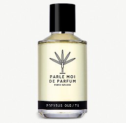 Founded by Benjamin Almairac, Parle Moi de Parfum is a contemporary Parisian perfume house with a passion for blending only the finest, raw ingredients. The Papyrous [sic] Oud / 71 eau de parfum (1971 was the date of the creation of the United Arab Emirates) is inspired by the scents and culture of the Middle-East, with dry notes of side of Incense and Papyrus, intertwined with to the rich scent of Oud.