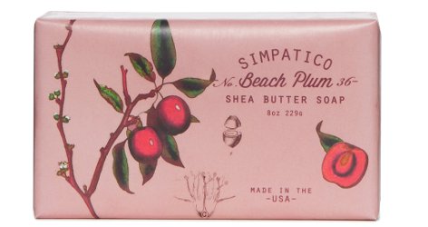 Beach Plum shea butter bar soap from Simpatico: "A combination of airy plum blooms, tart yet sweet fruitiness and warm, comforting vanilla creates layers of depth in this delightful, beachy scent." 227g for $14 at K Hall Studio.