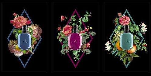 Les Parfums de Rosine Eloge du Vert, Bleu Abysse and Bois Fuchsia are each available as 100 ml ($170) Eau de Parfum. For buying information, see the listing for Les Parfums de Rosine under Perfume Houses.