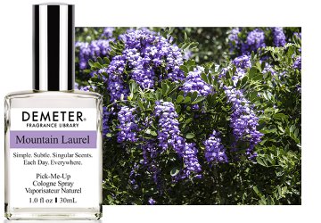 Demeter Mountain Laurel is available in 15, 30 or 120 ml Cologne and in matching bath and home products ($6 - $40).