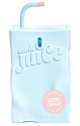 100% Chilled (top image, blue bottle, plus shown just below) ~ "So Crazy Cozy. Introducing 100% Chilled Eau de Parfum from the Eau de Juice collection served by Cosmopolitan. After dancing the night away, a recharge is necessary. Get lost in the sheets with sensual 100% Chilled for when you want to wrap yourself in a cashmere blanket - or at least pretend you are! This fragrance features a cozy blanket of replenishing red berries and bergamot, endless pillows of orange blossom infused with refreshing coconut water, a sleep-the-night-away blend of sexy cashmere woods, and lost in the sheets fluffy musk and sandalwood. Served in a collectible juice box bottle. Caution: May cause naps!"