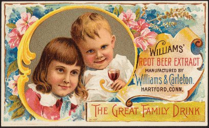 Note: top image is Williams' Root Beer extract manufactured by Williams & Carleton, Hartford, Conn. The great family drink. [front] by Boston Public Library at flickr; some rights reserved.