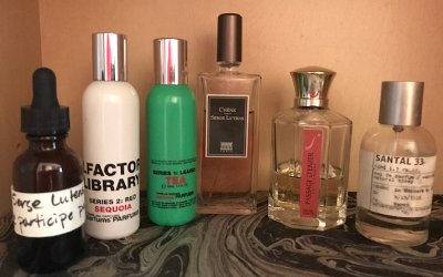 These days, she still loves Préparation Parfumée, but she’s also worn Le Labo Santal 33, dabbled in Comme des Garçons Series 1: Leaves, Tea, their incense series (she waxes nostalgic about Avignon), and some of the house's wood-centered fragrances including Hinoki. She’d love a bottle of Le Labo Guaiac 10 if her budget permitted. She continues to keep her distance from anything wafting too much of the garden, and she doesn’t like the smell of cinnamon, either.