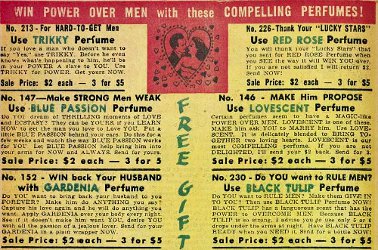 David J. Trulove is the purported head of Trulove Perfume. Trulove perfume ads peppered comic books in the 1950s. Like many ads for fragrance today, they promise seduction and, curiously, bypass what the perfume actually smells like. But Mr. Trulove doesn’t mess around with fancy models in diaphonous gowns and vague references to the modern woman. No, he goes right to the meat: love and power…