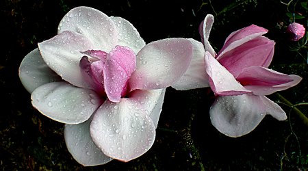 Note: top image is Magnolia in the rain. [cropped] by Bernard Spragg. NZ at flickr; public domain.