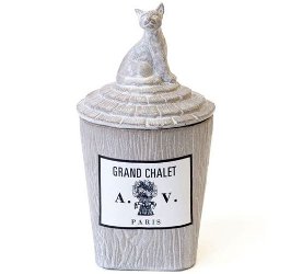 I don't think I used to think of linden as calming, particularly, but lately I find Astier de Villatte Grand Chalet just that. ("It was here, in this unique landscape with its healing climate, that the painter Balthus made his home, enchanted by the fragrances of milk, honey and hints of citrus from the ancient lime trees that surrounded his studio.") If I had more money to invest in calm, I'd consider the ceramic candle ($140 at Sue Fisher King, or you can get the glass version for $85) and as long as I was investing so much in calm, I might as well throw in the kitty lid, $100).
