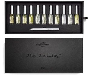 Speed smelling is so 2019. This year, IFF is going slow, with "... the theme of “Luxury, Calm, and Pleasure” (after Baudelaire’s “Invitation to the Voyage”). The luxury of creation without looking at price tags. The re-connection to oneself and to suspended time. The rekindled pleasure of re-learning what they already knew, seeing with fresh eyes, away from the frantic trance of day to day. Join them in the Slow Smelling, close your eyes and partake in their imagined worlds: Luxury, Calm, and Pleasure, indeed." Slow Smelling 2020, with 10 ml fragrances by Fanny Bal, Nicolas Beaulieu, Caroline Dumur, Jean-Christophe Hérault, Bruno Jovanovic, Juliette Karagueuzoglou, Delphine Lebeau, Domitille Michalon-Bertier, Julien Rasquinet, Anne Flipo and Dominique Ropion, $185 at Luckyscent.