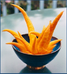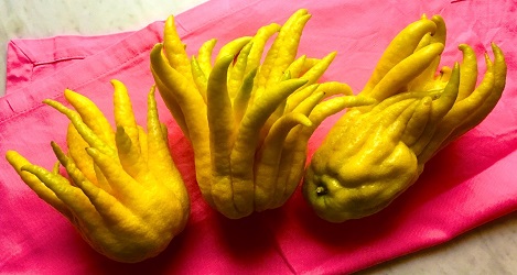 In Japan, China and Korea, the fruit’s “fingers” are thought to resemble the boneless, elegant hands of the Buddha. Fresh, highly scented Buddha’s hand citrons were taken to temples as offerings or were placed on family altars at home instead of flowers to scent a room and to bring good luck, especially during new year celebrations. In Chinese, the fruit is called fo-shou, similar to the words for fortune/blessings and longevity. The fingers of the fruit may be splayed or close together depending on the variation/cultivar grown.