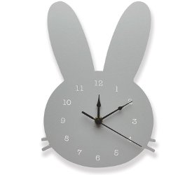 Note: the Bunny Wall Clock ("Add some style to your child's room with our cute Bunny Wall Clock and make learning the time fun!") is $63.70 at Nest Accessories at Etsy.