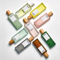 Spanish house Loewe has launched 7 Cobalt, a new spicy woody fragrance for men. 7 Cobalt is a flanker to 2010's 7 de Loewe. The brand has also repackaged their fragrance line: all of the offerings now come in the block-shaped flask shown above, in a rainbow of colors (see below).