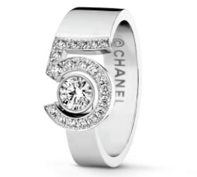 There are apparently 123 items in the No. 5 jewelry collection at Chanel (see yesterday) and only a few of the pieces are online, possibly because the rest are too expensive to list the prices? Shown is one of the more affordable options, the Eternal No. 5 ring, in 18k white gold and diamonds, $7,800.