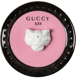 And yes, they're still doing incense dishes. The kitty ("The cat head appears at the center with a hole to hold an incense stick. "XXV"—the number favored by Creative Director Alessandro Michele—appears at the top along with a playful take on the House name: Guccy") will run you $200, and the matching incense sticks, currently available in 5 fragrances including the Inventum mentioned above, are $80 for 25.