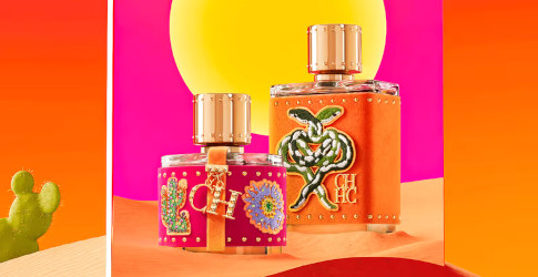 Introducing two new limited edition CH scents for him and for her that will raise temperatures and unleash passions. Inspired by the hot, mysterious desert sands, these dazzling and colourful perfumes capture the magic of the exotic plants and creatures that dwell within the fascinating landscapes of the desert.
