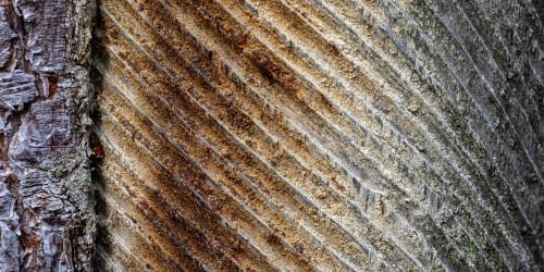 Note: top image is Scratched Pine Bark: Old traces of resin extraction, Darß forest, Hither Pomerania. [cropped] by Simaron at flickr; some rights reserved.