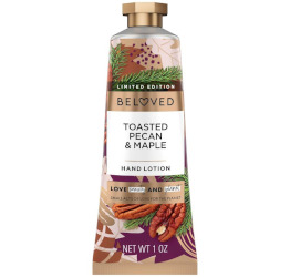 From Love Beauty & Planet, limited edition hand cream in Toasted Pecan & Maple: "A delicate blend of toasted pecan and indulgent maple, this soothing hand cream formula is made with 92% naturally derived ingredients and leaves dry skin feeling soft & smooth. It is infused with essential oils & plant-based moisturizers and is paraben-free. What's more, our hand lotion is PETA approved & vegan, cruelty-free, and loaded with ethically sourced oils and extracts. It also comes in packaging made with 65% recycled plastic." $4.99 at Target.
