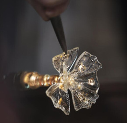 An(other) extravaganza from Guerlain to honor the 170th birthday of the bee bottle: Bouquet de la Mariée in the Murano edition from glassmaker Aristide Najean. The flacon "incorporates sculptural flowers flecked with 24-karat gold, delicately arranged to appear as though they are pouring out of the flacon; like with the original iteration, golden bees adorn the exterior. The center of the bottle displays the date April 30, 1853 — the day the bee bottle was born".