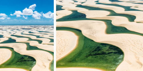 Note: top image is Parque Nacional dos Lençóis Maranhenses by Julius Dadalti [with detail at right], via Wikimedia Commons; some rights reserved. You can see the Wikipedia entry on Brazil's Lençóis Maranhenses National Park here.