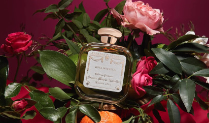 I've been a fan of Santa Maria Novella for a very long time, and I cherish my memories of a visit to the original boutique in Florence and I'm very fond of my bottle of Rosa, a very old-fashioned fragrance with notes of soft violet petals and astringent greenery to complement its dusty-pink rose heart. Rosa Novella (shown just above) was launched in 2020, and it's a different species entirely. Its list of notes includes lemon, petitgrain, rose, jasmine, gardenia, patchouli, sandalwood, cedar and musk; my prevailing impression is that of a somewhat blunt patchouli-rose perfume that's trying a little too hard to be a "classic yet modern" rose chypre, with the emphasis on the "modern." On the other hand, I do really like the matching wax tablets, one of which is currently scenting my office. Available as 50 ml ($100) and 100 ml ($150) Eau de Cologne, plus matching body products and home fragrance.